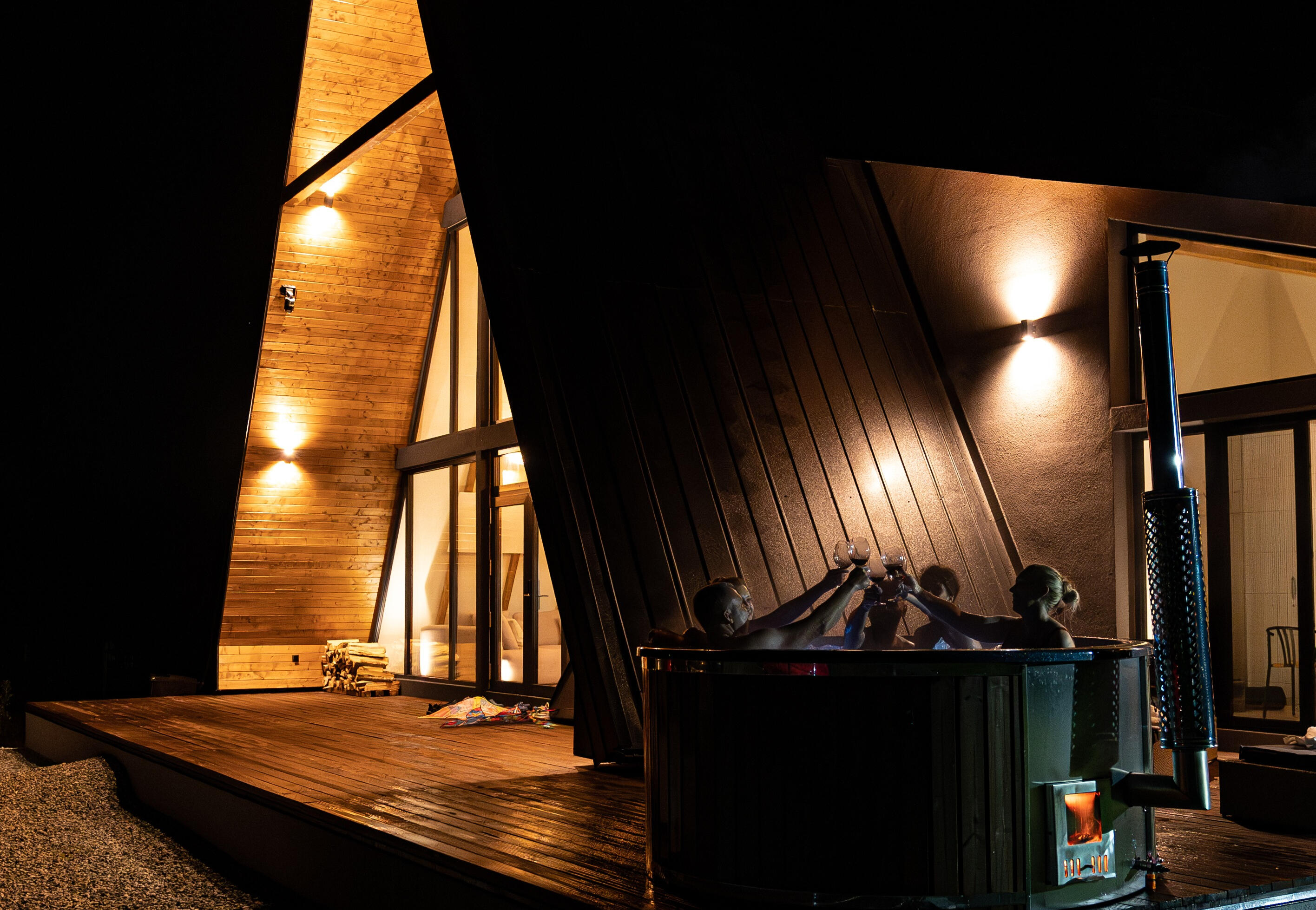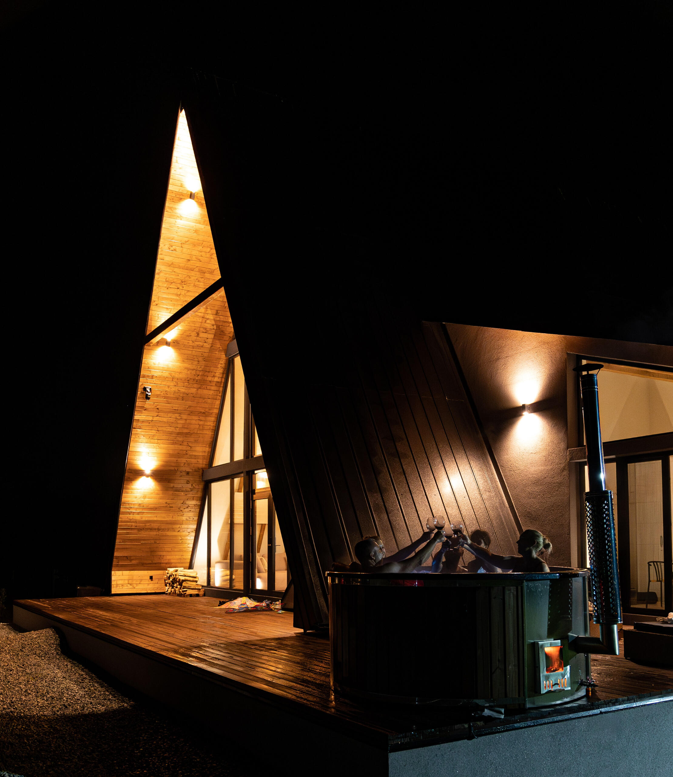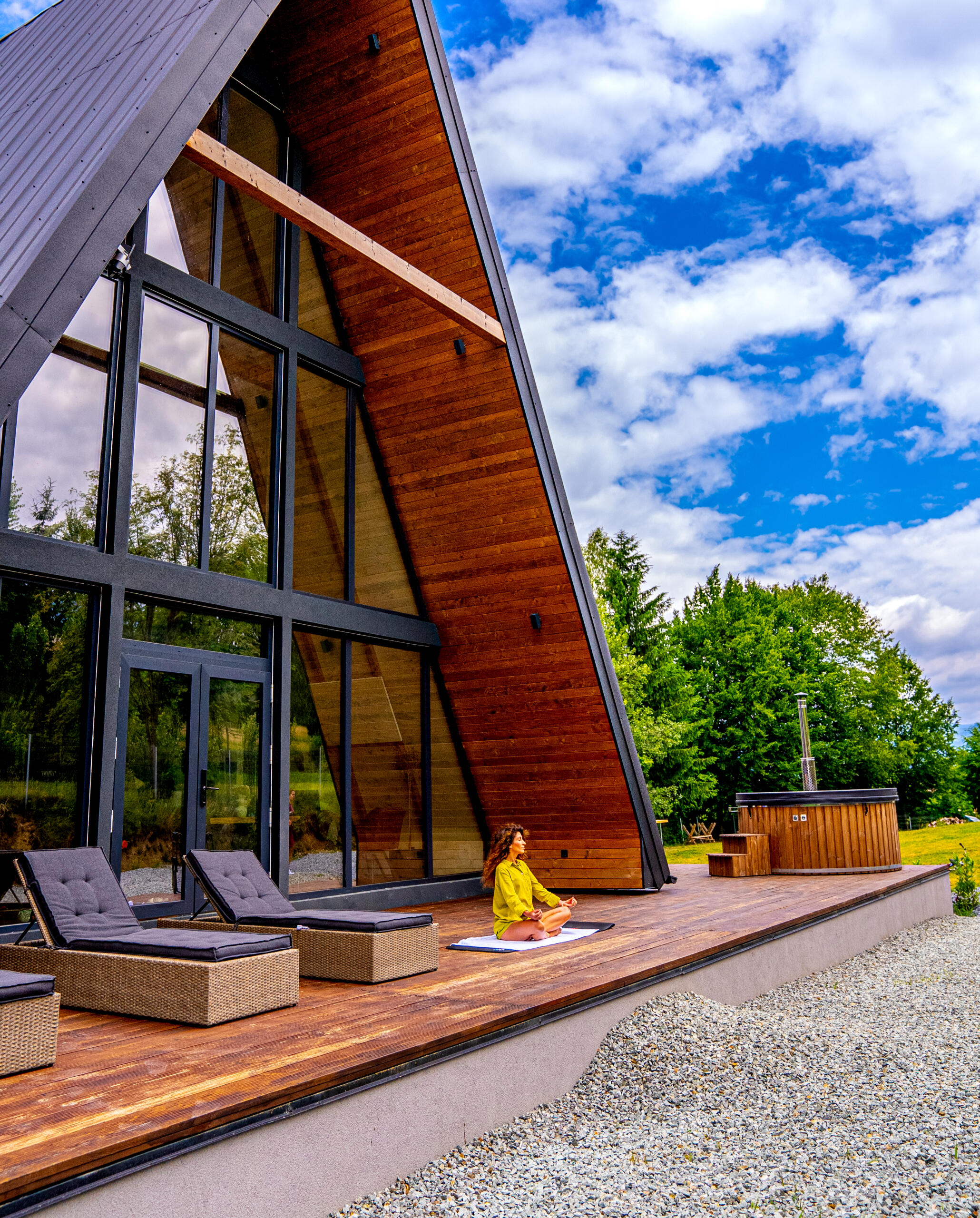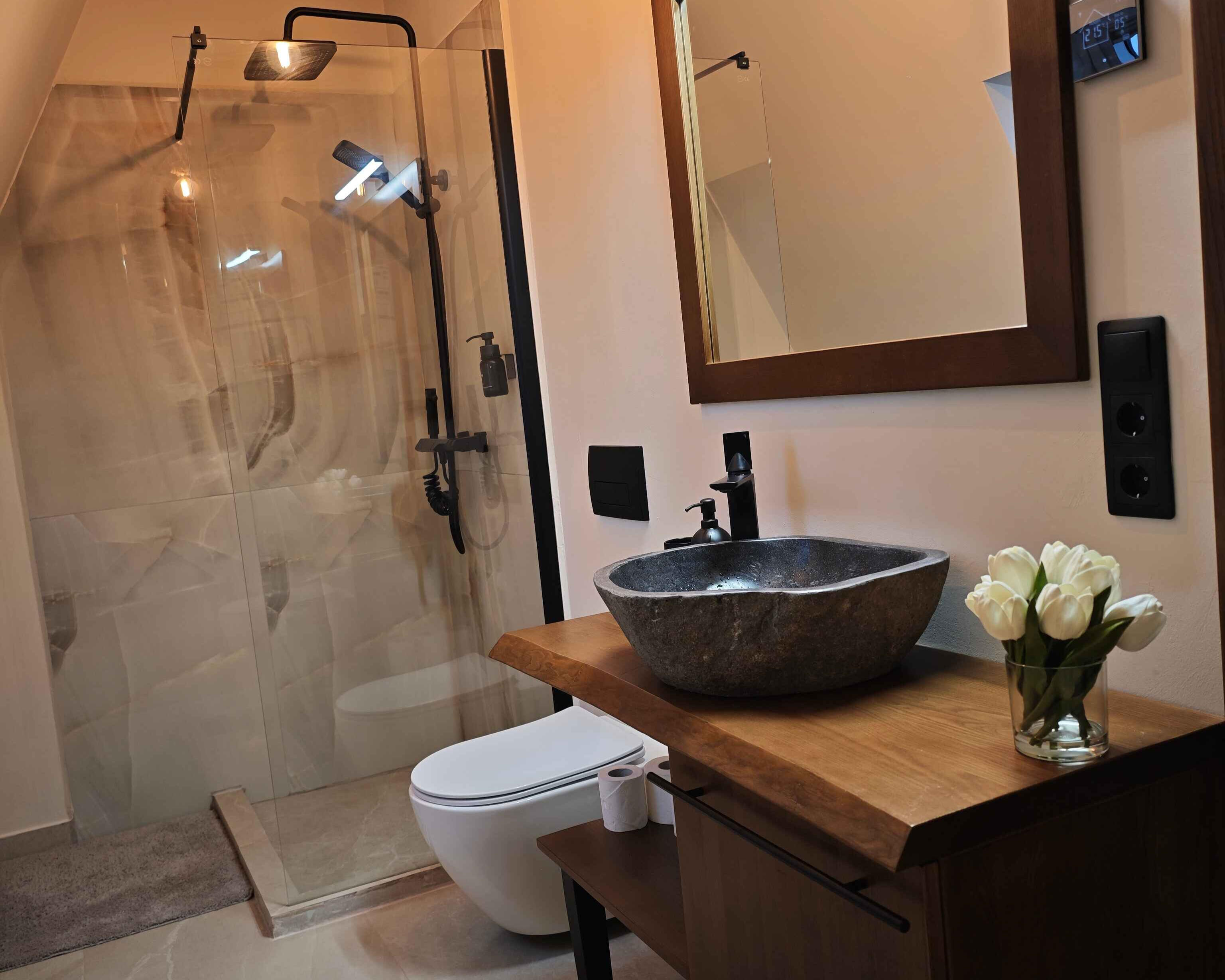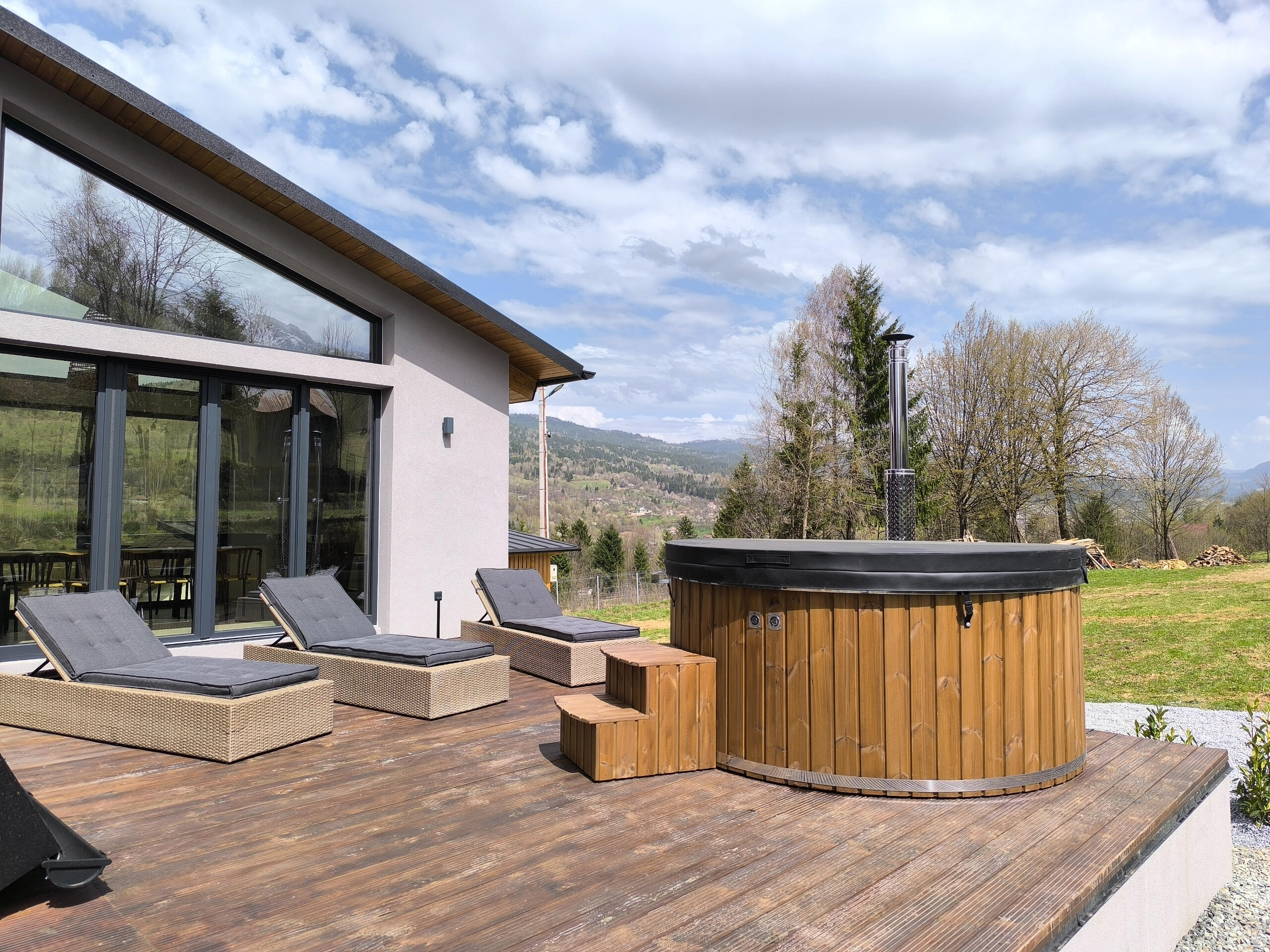 Enjoy the saltwater hot tub, aeromassage and LED ambient light – a unique relaxation experience (water is changed with each stay).🌿Generous space: