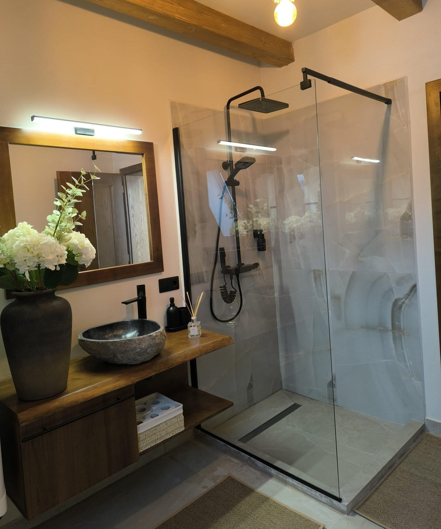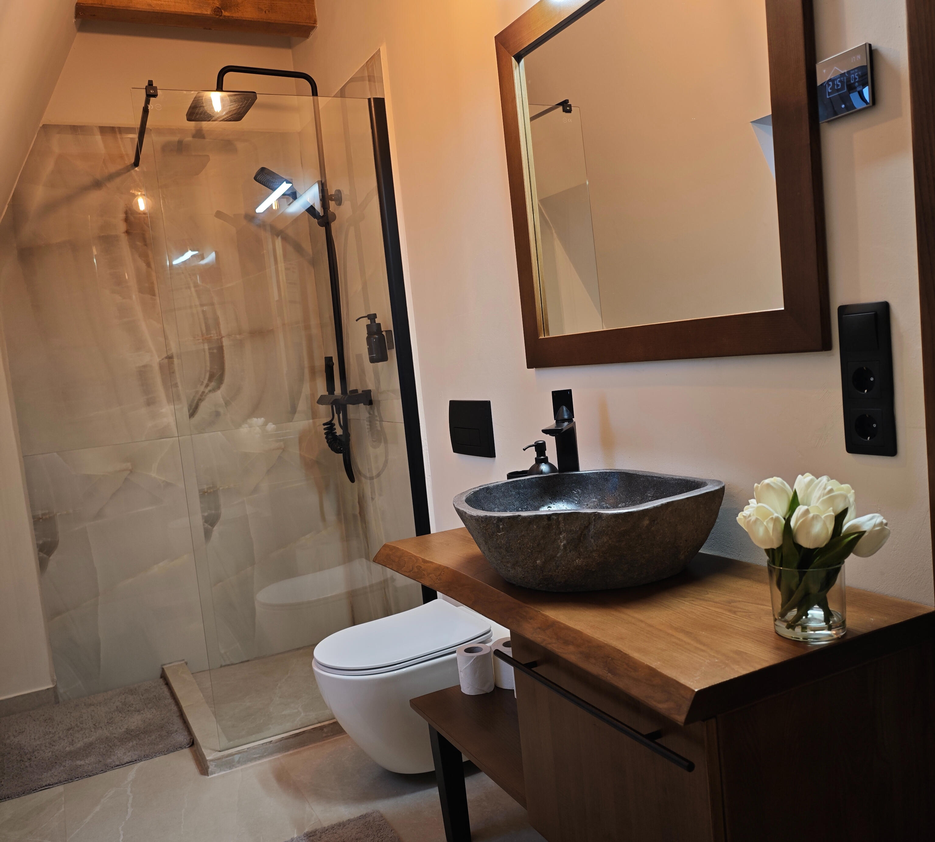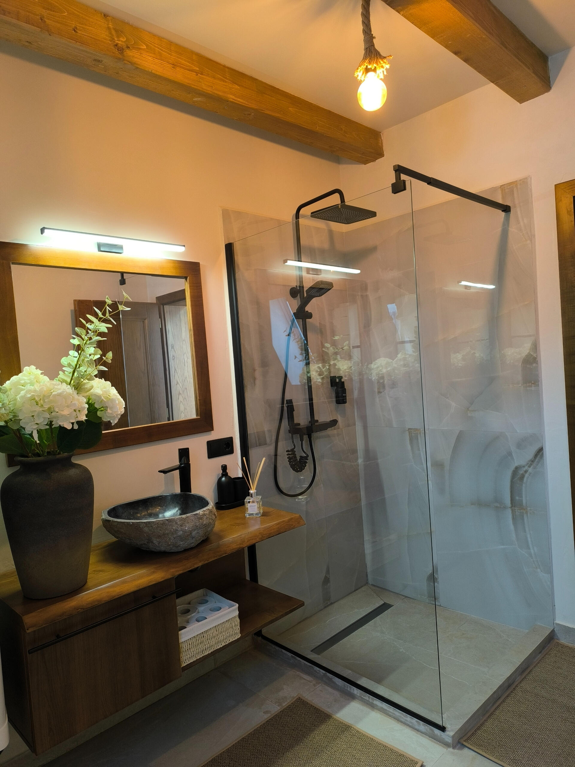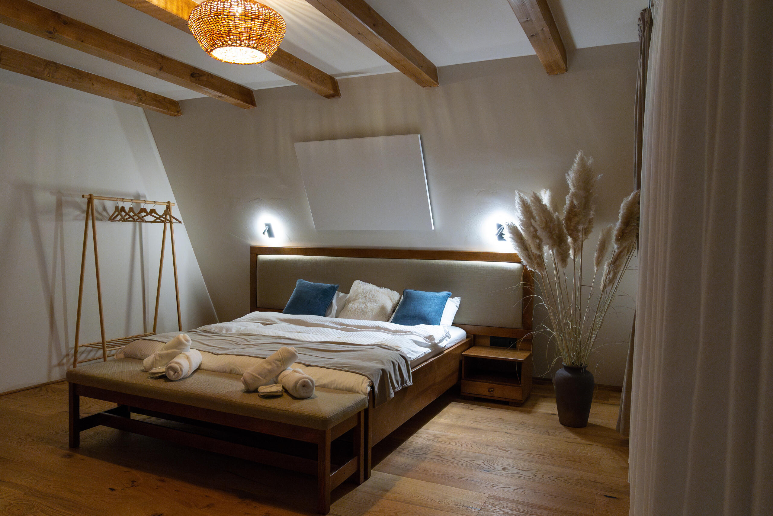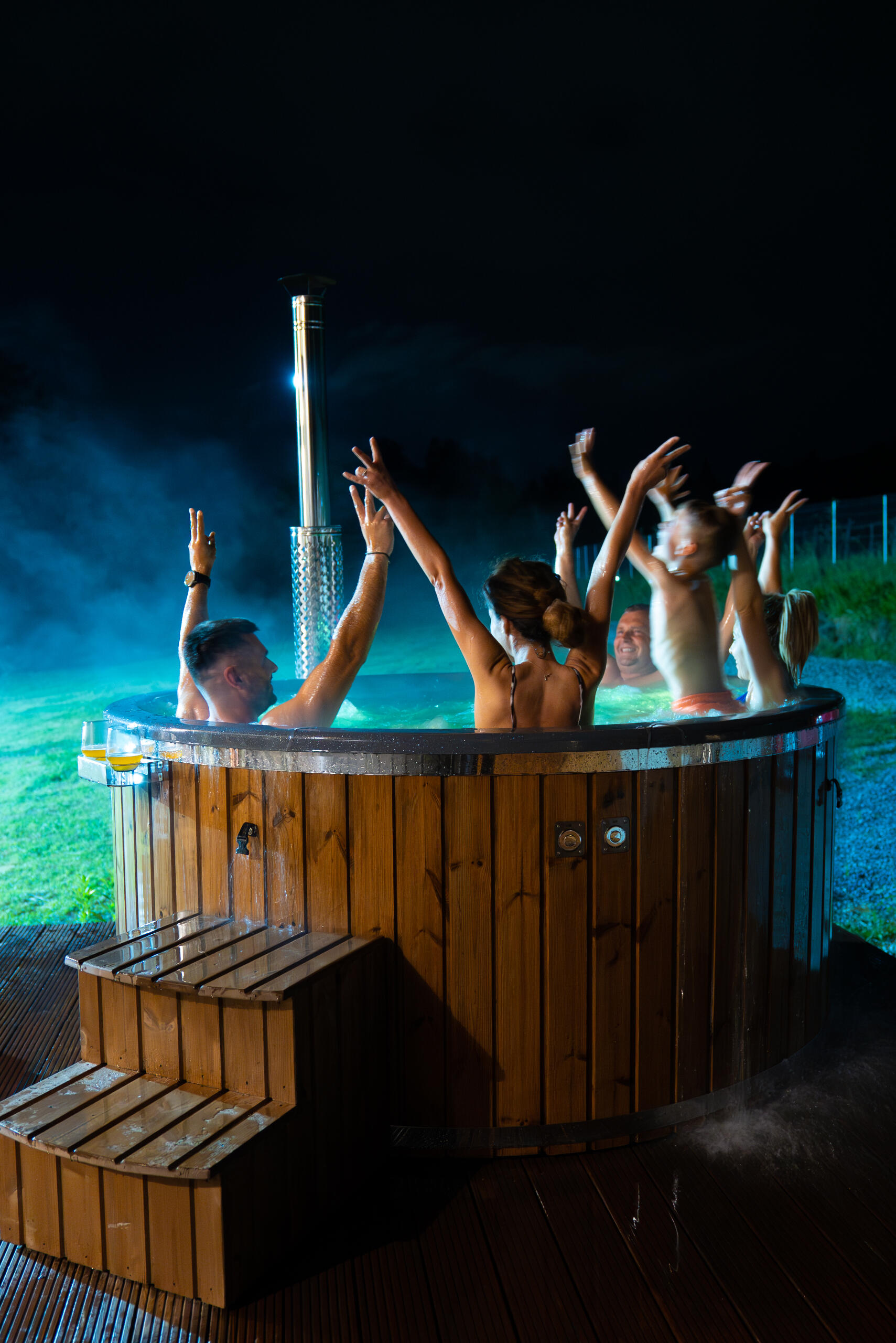 Enjoy the saltwater hot tub, aeromassage and LED ambient light – a unique relaxation experience (water is changed with each stay).🌿Generous space: