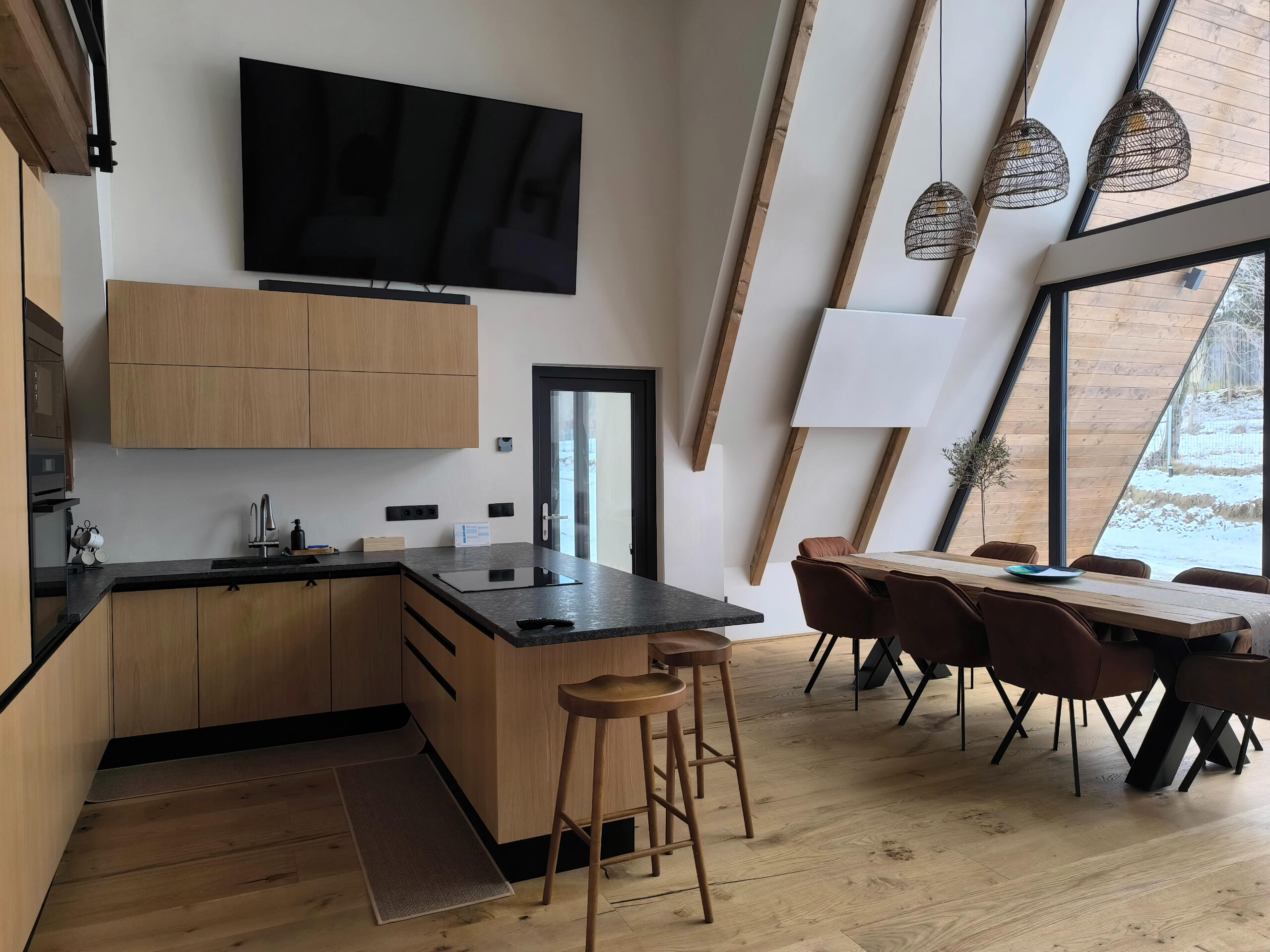 🏡 Chalet Rafenstein Moisei – Refugiul tău de poveste în inima MaramureșuluiDescoperă Chalet Rafenstein, o cabană spectaculoasă în formă de A-frame, situată în pitorescul Moisei, în inima Maramureșului. Înconjurată de peisaje care îți taie respirația, cabana oferă combinația perfectă între confortul modern și farmecul autentic al zonei – un loc ideal pentru cei care doresc să evadeze din agitația cotidiană.Cu 4 dormitoare spațioase, 2 băi și un living open space cu tavan de 10 metri înălțime, Chalet Rafenstein este locul perfect pentru până la 8 persoane, fie că e vorba de o vacanță în familie, o escapadă romantică sau o aventură cu prietenii.🔥 Confort și atmosferă:Șemineu cu lemne pentru seri calde și intimeBucătărie complet utilată (cuptor, mașină de spălat vase, aparat de cafea cu boabe, zonă de dining)TV Samsung uriaș de 218 cm cu soundbar + televizoare LG în 3 dormitoareTerasă închisă cu grătar pe gaz și ceaun tradițional în grădină💧 Relaxare deplină: