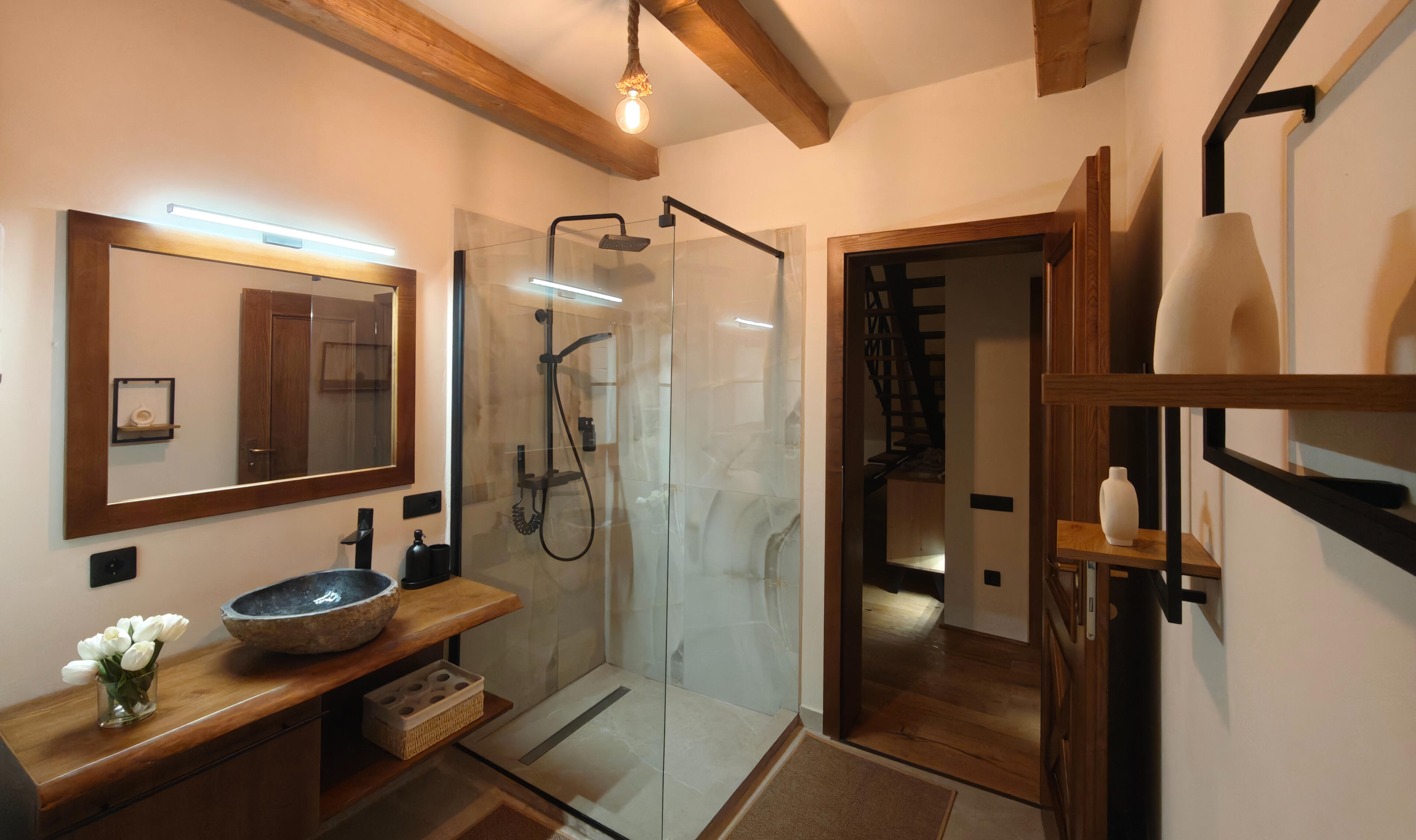 Bucură-te de ciubărul cu apă sărată, aeromasaj și lumină ambientală LED – o experiență unică de relaxare (apa este schimbată la fiecare sejur).🌿 Spațiu generos: