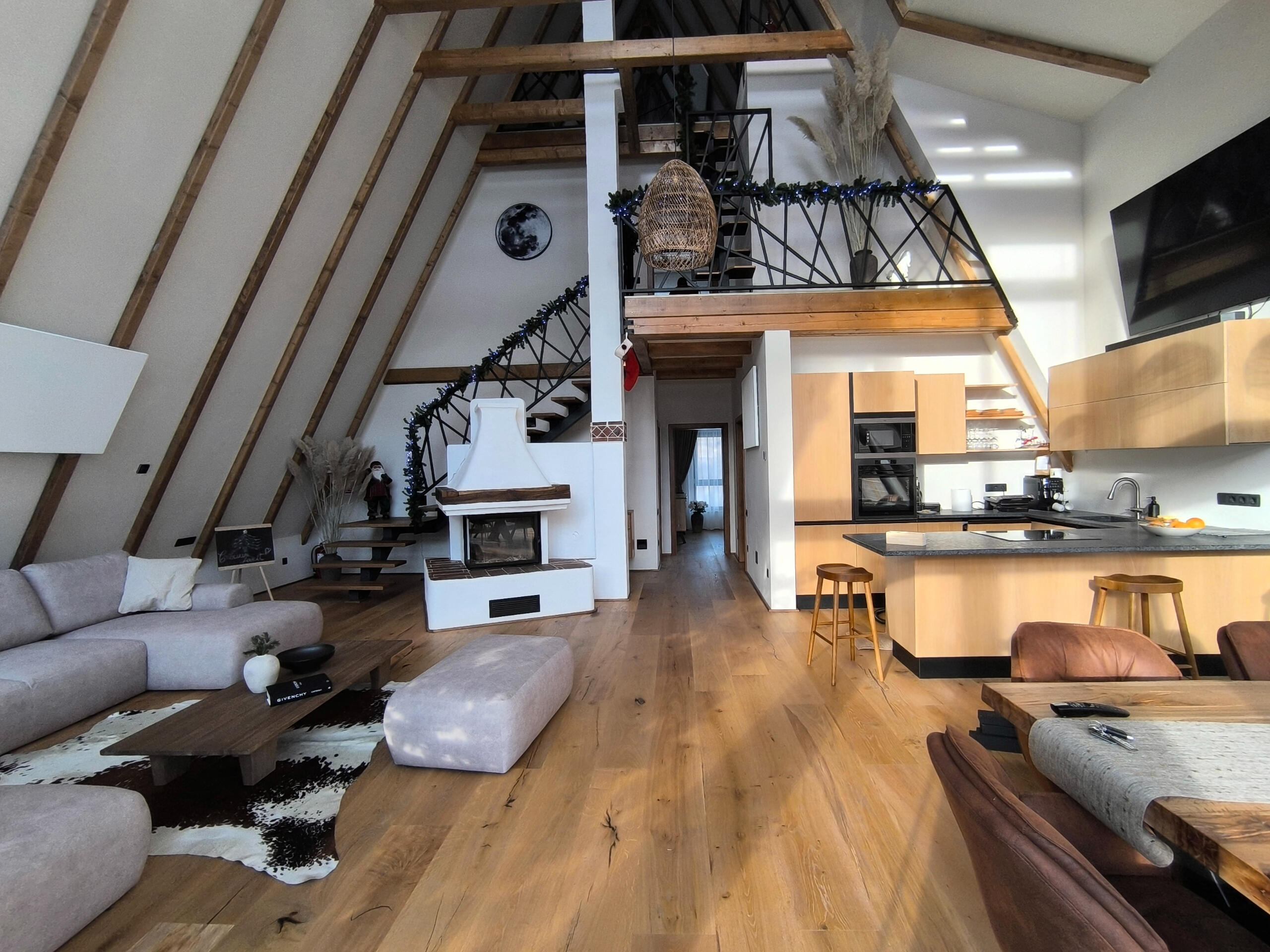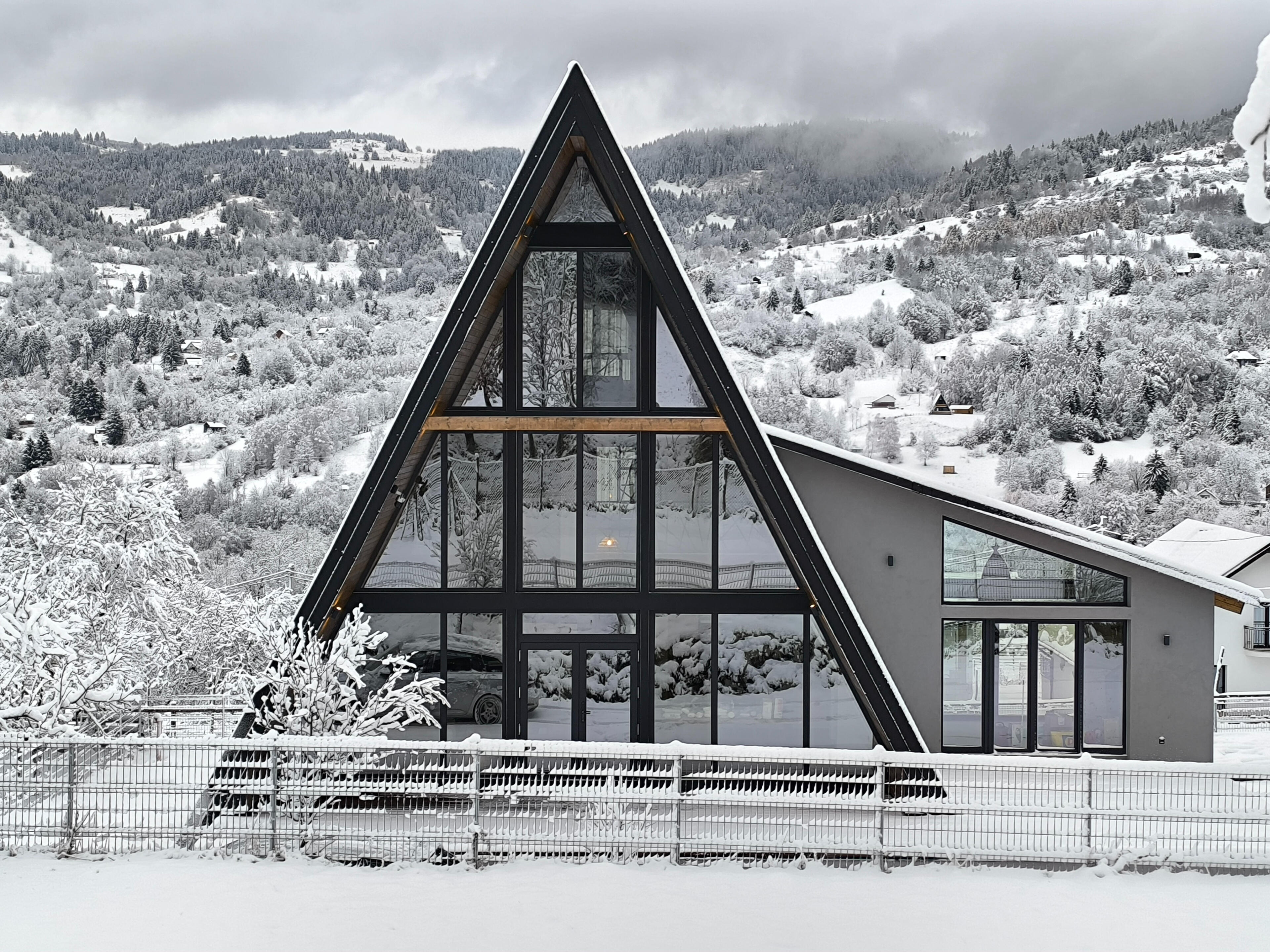 🏡 Chalet Rafenstein Moisei – Your fairytale retreat in the heart of MaramuresDiscover Chalet Rafenstein, a spectacular A-frame chalet located in picturesque Moisei, in the heart of Maramures. Surrounded by breathtaking landscapes, the chalet offers the perfect combination of modern comfort and authentic charm of the area – an ideal place for those looking to escape the hustle and bustle of everyday life.With 4 spacious bedrooms, 2 bathrooms and an open-space living room with 10-meter-high ceilings, Chalet Rafenstein is the perfect place for up to 8 people, whether it's a family vacation, a romantic getaway or an adventure with friends.🔥 Comfort and atmosphere: