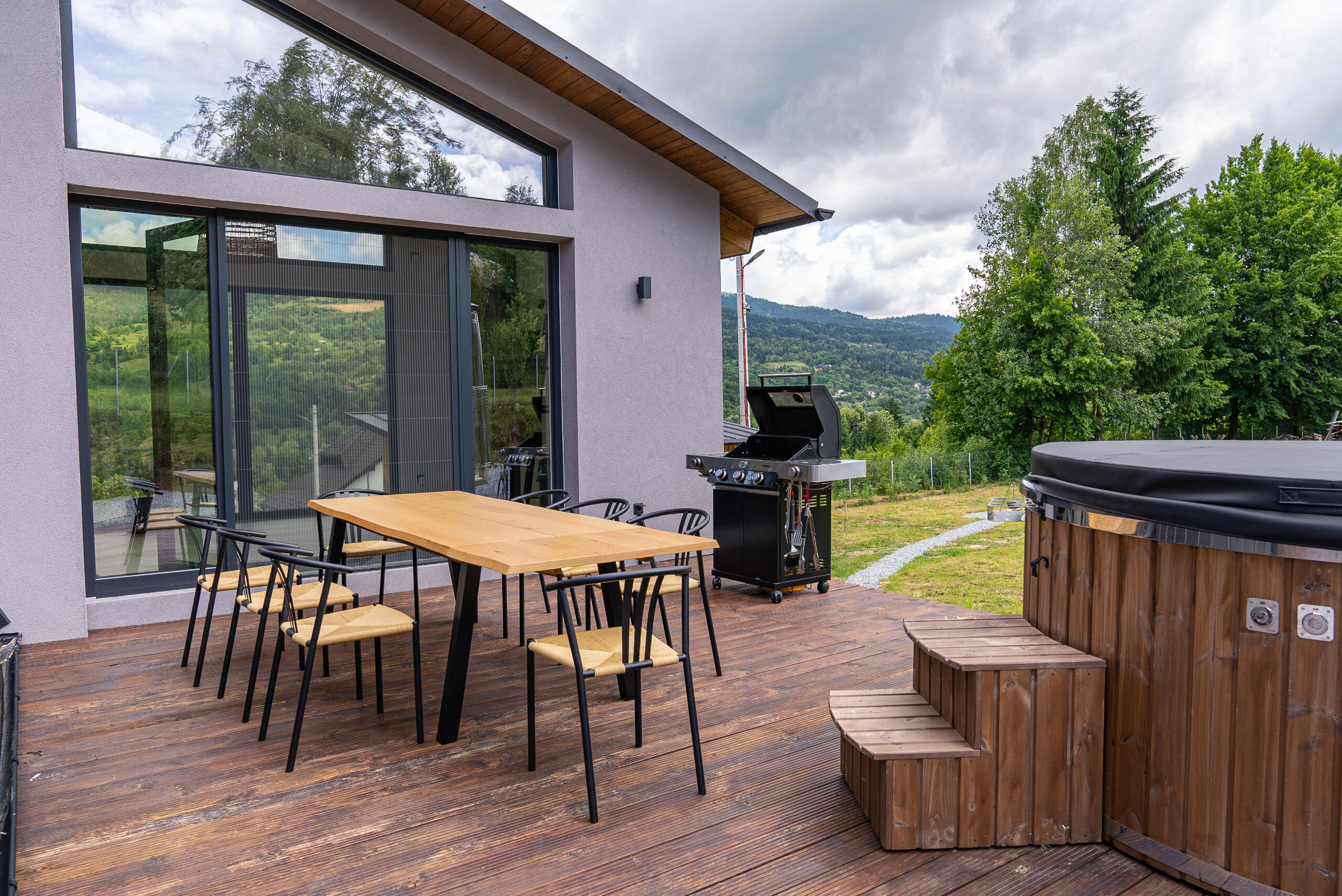 Wood-burning fireplace for warm and cozy eveningsFully equipped kitchen (oven, dishwasher, coffee maker with beans, dining area)Huge 218 cm LG TV with soundbar + LG TVs in 3 bedroomsEnclosed terrace with gas grill and traditional cauldron in the garden💧 Complete relaxation: