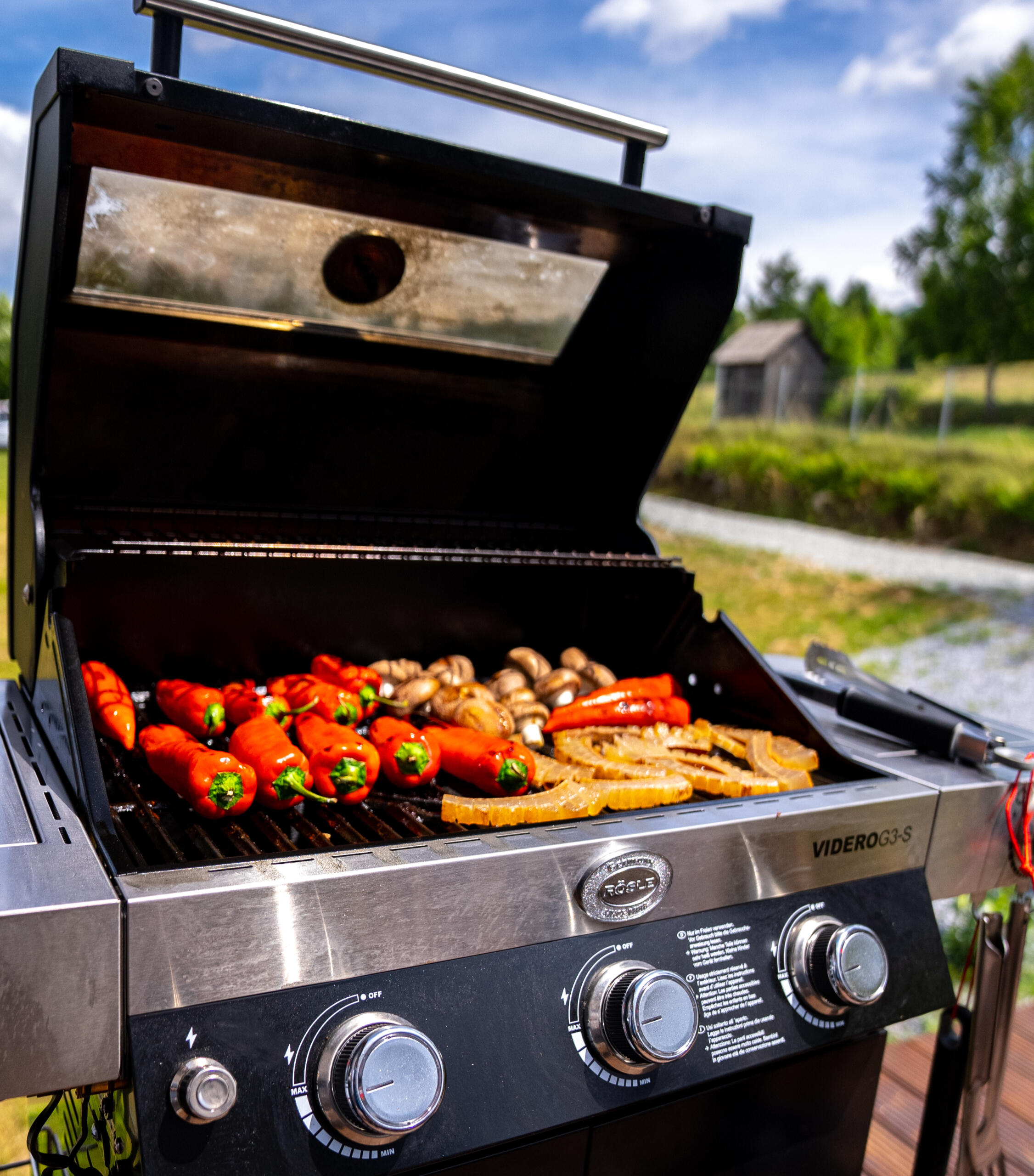 Geschlossene Terrasse mit Gasgrill und traditionellem Kessel im Garten💧 Vollkommene Entspannung: